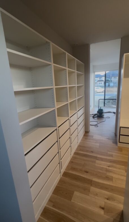 打合せ時に、購入するIKEAパックスの大きさを収納寸法に取り入れて、隙間なく綺麗に