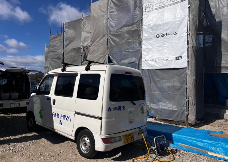 また、組み上がってから外部の構造用合板を貼り終えた時に、白蟻駆除業者による